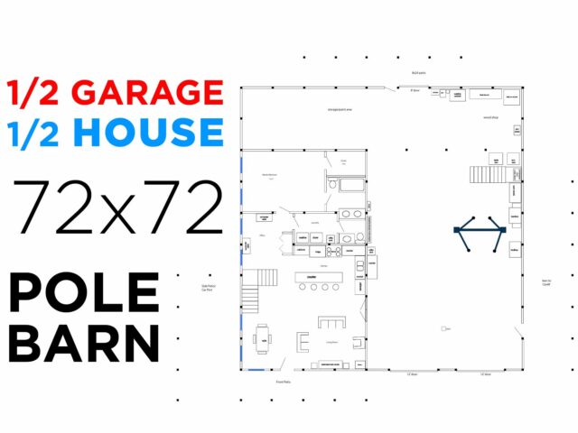 I designed my dream House Garage (aka Barndominium, Pole Barn House, Shop House). It’s 72×72′ and features a 24×40′ loft on the shop side, and a second story loft on